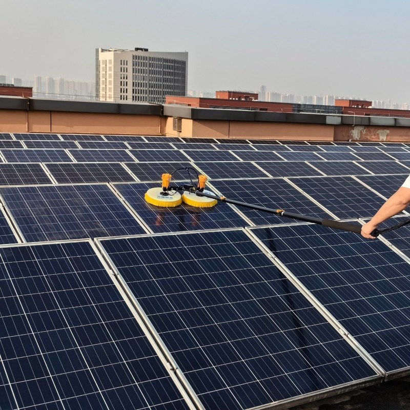 Strumento per la pulizia dei muri di vetro Macchina per la pulizia dei pannelli solari Fabbriche fotovoltaiche Sistema di pulizia elettrico Spazzola a doppia rotazione